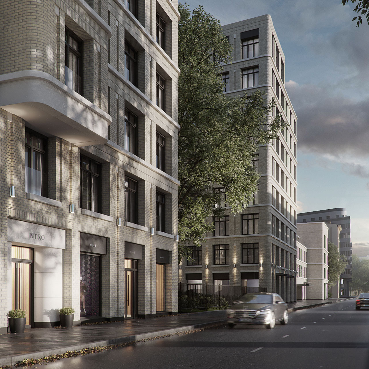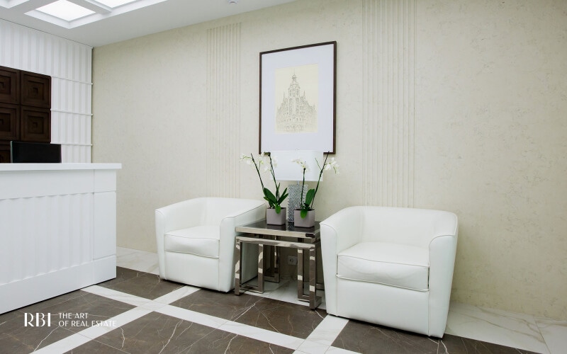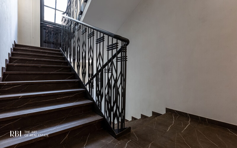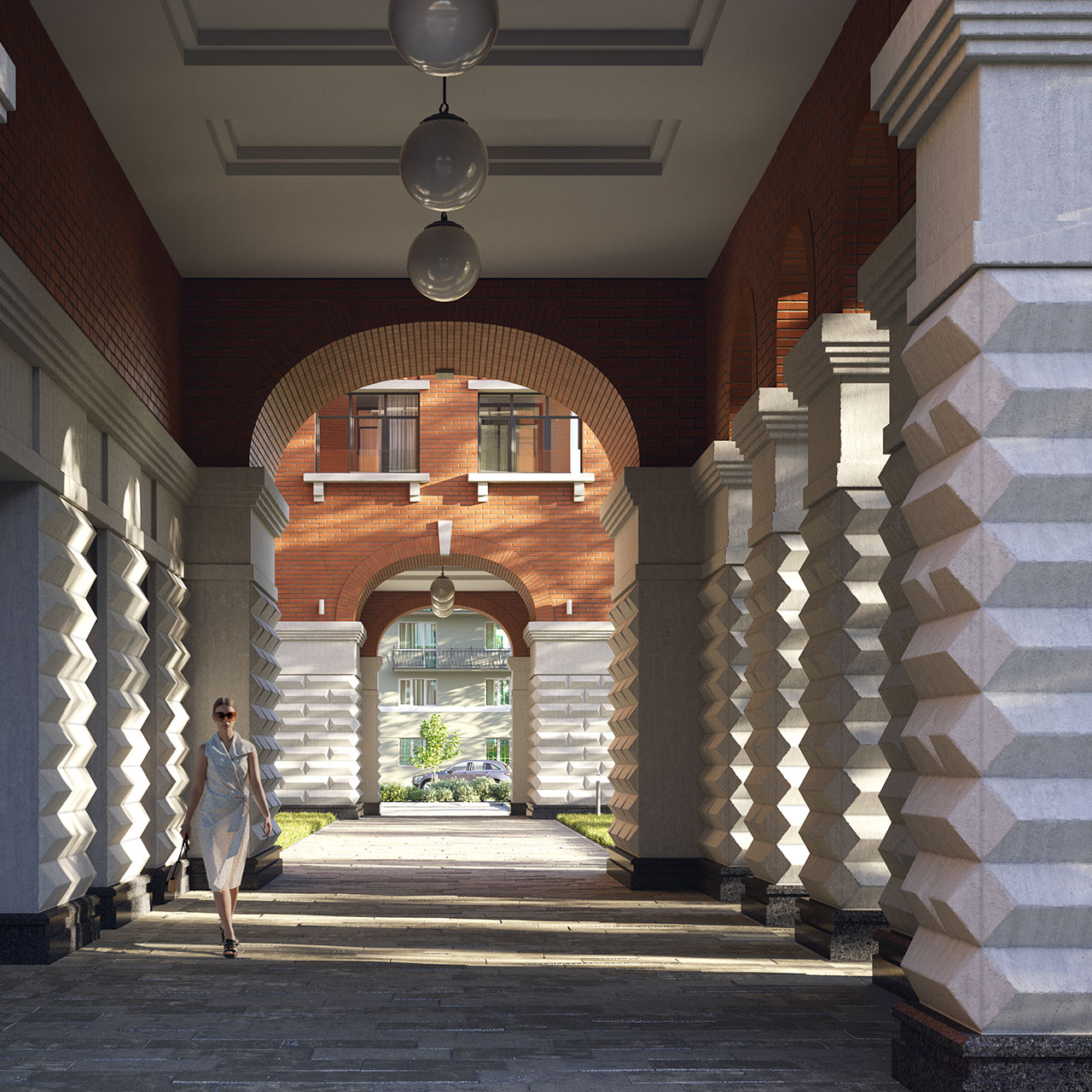 Холлы «Болконского» украшены картинами в стиле графической архитектурной живописи — монохромные архитектурные эскизы. Они созданы эксклюзивно для RBI. В качестве сюжетов выбраны здания центральных районов города.