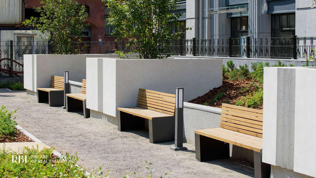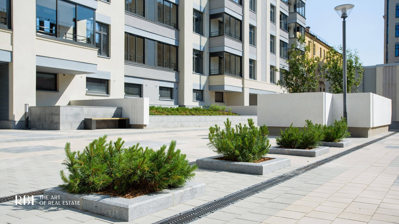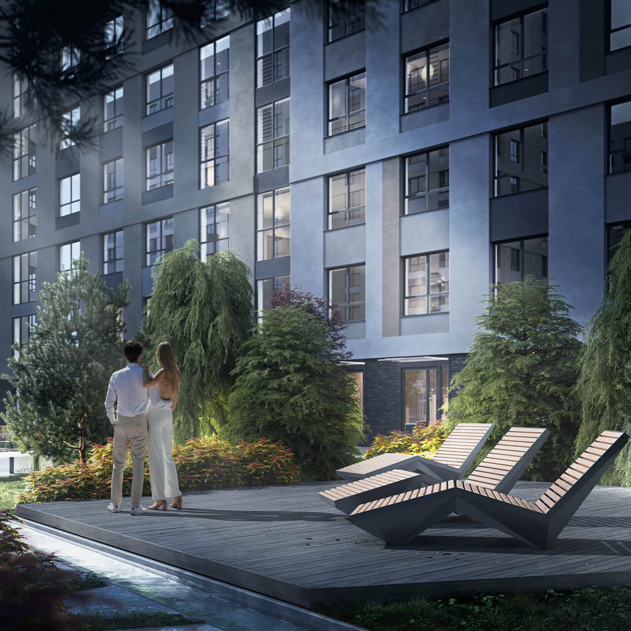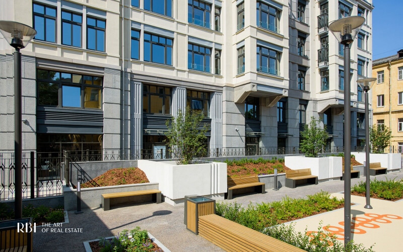 Внутренний двор утопает в зелени и свободен от машин. Горная сосна, ели, боярышник и яблони разместятся в декоративных куртинах и , одновременно, – скамеечках. На всей территории двора и в холле свободный WI-FI.